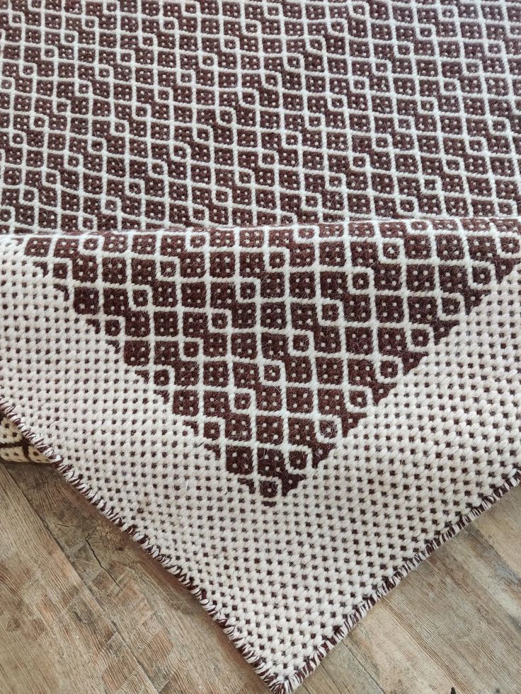 Add warmth and texture to your space with this beautifully handwoven rug featuring a classic diamond pattern in rich brown and soft ivory tones. Crafted with precision, this flatweave rug offers a perfect balance of durability and comfort, making it ideal for everyday use.